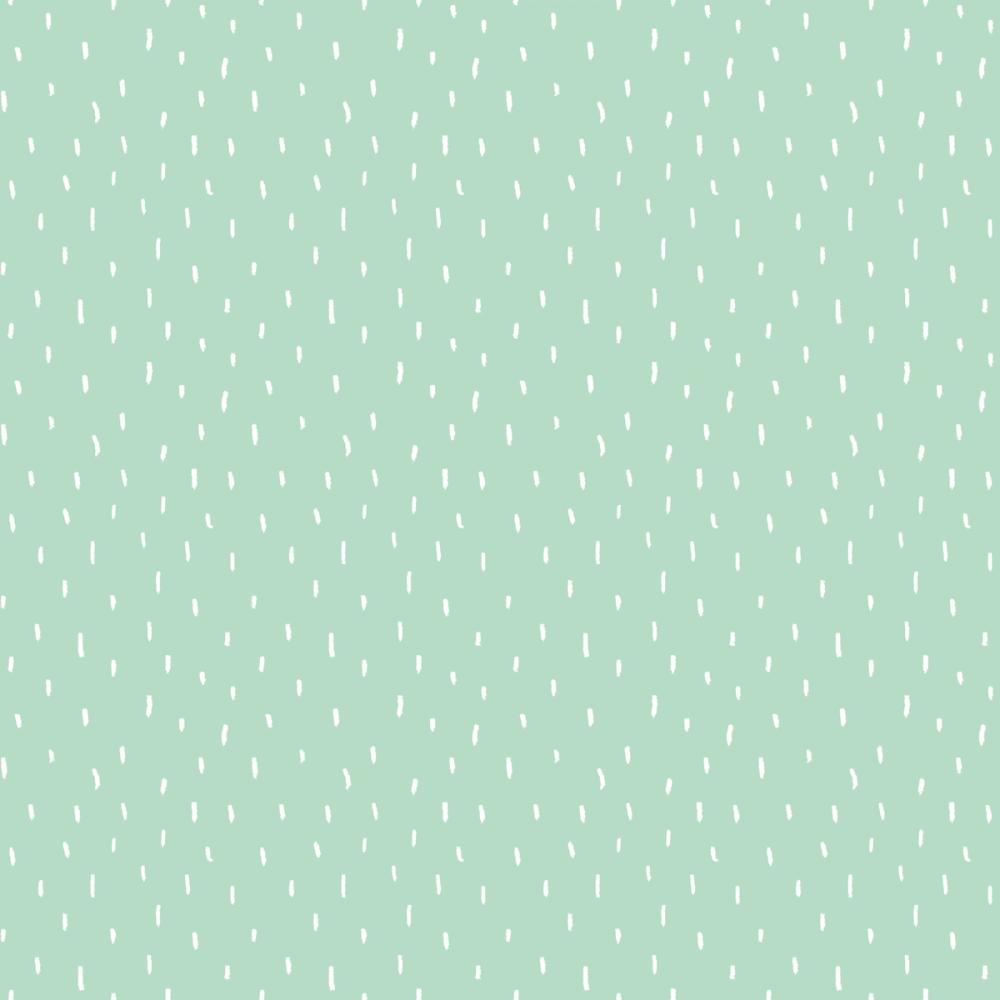 Een patroon van kleine, witte streepjes verspreid over een zachte pastelgroene achtergrond zorgt voor een speels en luchtig effect. De streepjes liggen kriskras, wat het ontwerp een vrolijke en eigenzinnige uitstraling geeft, terwijl de mintgroene kleur rust en frisheid uitstraalt. Deze minimalistische wanddecoratie past perfect in ruimtes zoals de woonkamer, slaapkamer, kinderkamer of hal. De combinatie van pastelkleuren en een eenvoudig patroon maakt dit behang ideaal voor wie op zoek is naar een rustige maar unieke sfeer. Een kalme en dromerige uitstraling voor elk interieur met een vleugje speelsheid.