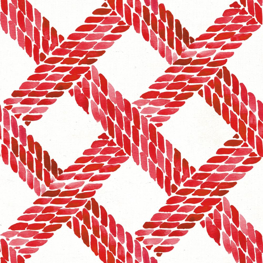 A bold and playful wallpaper featuring a striking pattern of braided ropes in cherry red and deep pink on a clean white base. The ropes cross diagonally, forming rhythmic diamond shapes that bring a sense of movement and texture to your walls. The strong contrast in colours gives the design a vibrant, artistic feel that stands out in any space. Perfect for creative areas like home offices, children's rooms, kitchens or hallways where personality and energy are welcome. This popping red design suits anyone looking to add a dramatic, standout feature to their walls.