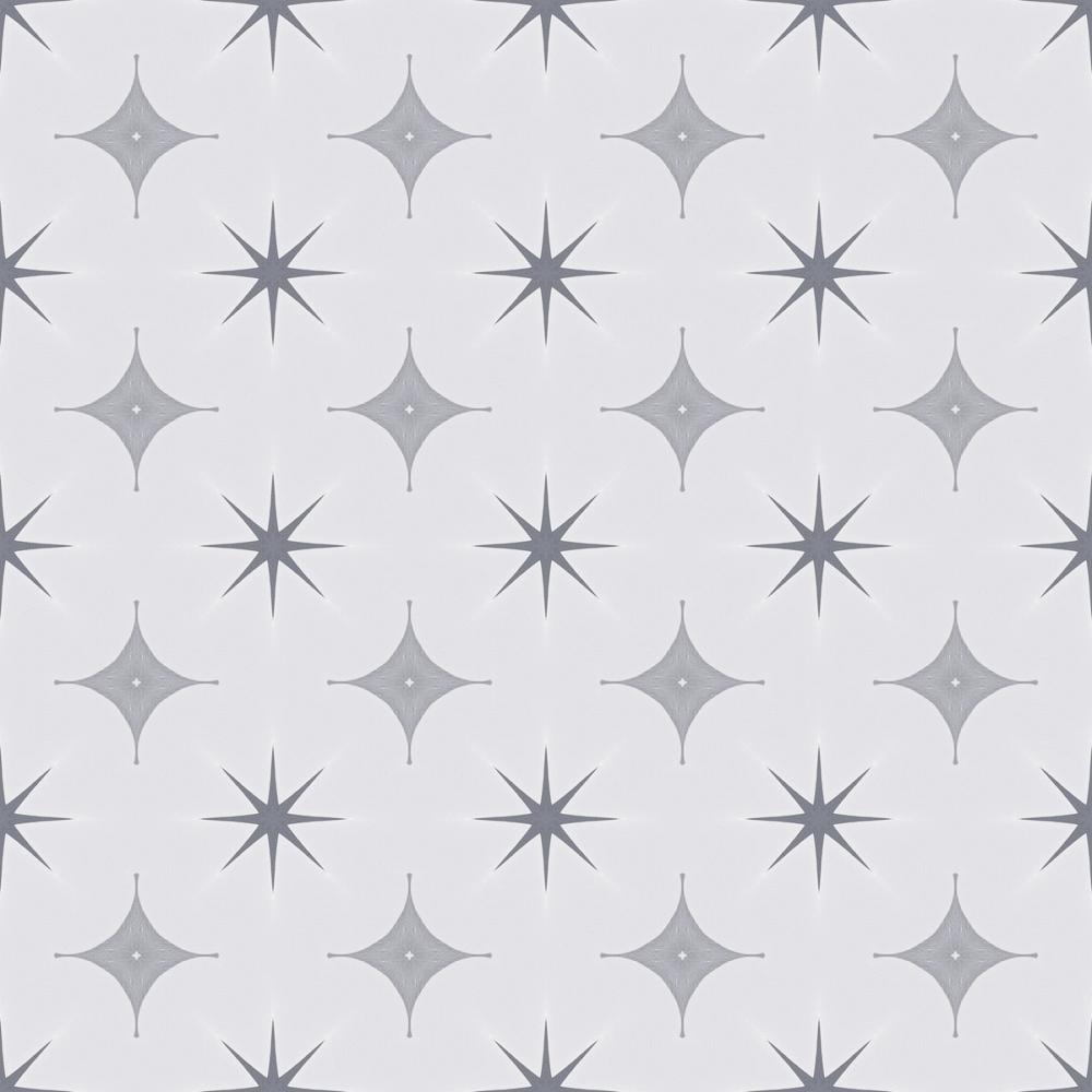 A calm and refined geometric wallpaper featuring dark gray eight-pointed stars and rounded diamond shapes on a soft smoke-gray background. The repeating, symmetrical pattern creates a sense of balance and order, making it perfect for those who love minimalist and timeless design. The monochromatic colour scheme adds a modern touch while staying neutral enough to suit a variety of styles. Ideal for living rooms, bedrooms, home offices, or hallways, this wallpaper brings a serene and sophisticated atmosphere to any space with its smooth texture and clean lines.