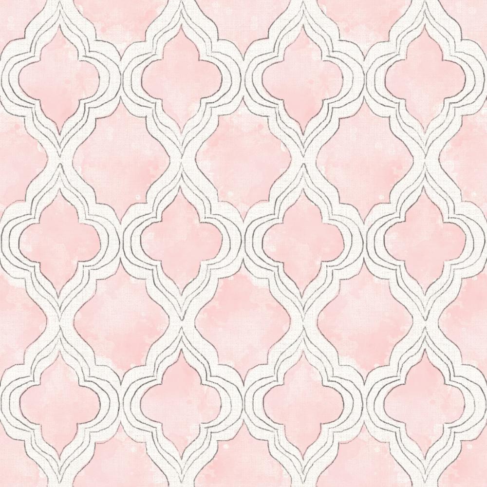 Soft blush pink tones meet a calm, geometric rhythm in this wallpaper with a repeating quatrefoil pattern. The white outlines and black inner lines create a balanced and symmetrical design that feels both cosy and tranquil. Its watercolour-like texture adds a dreamy pastel finish, making it perfect for creating a serene mood. Ideal for bedrooms, living rooms, or calm corners in a home office, this wallpaper brings a warm and inviting atmosphere to any space. A great choice for those who prefer soft patterns and soothing colours in their interior décor.