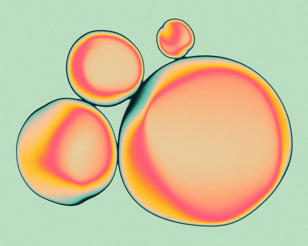 Four floating circles in pink, orange, yellow, and soft green shine on a light green background, blending with smooth gradients. The size and placement of the circles create a playful rhythm, with the largest on the right and the smallest at the top. A soft dark outline gives each shape a subtle 3D look, adding depth and movement. This dreamy and whimsical abstract design fits perfectly in living rooms, children's rooms, creative offices, or hallways. The popping colours and airy layout make the space feel alive and light. Ideal for anyone who wants to add a bold, modern touch to their walls with a fun and imaginative style.