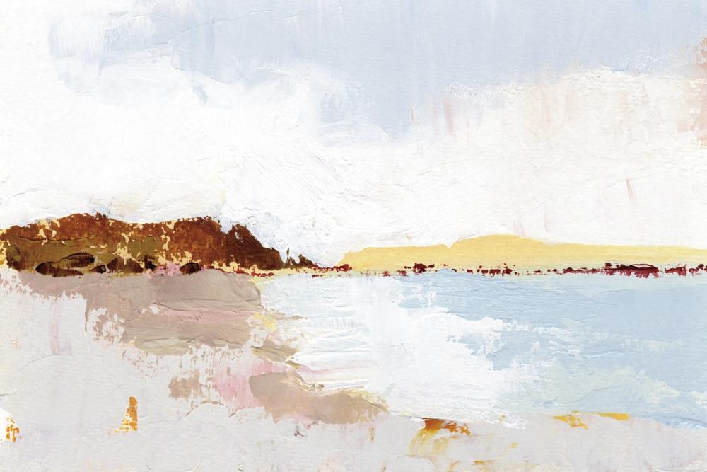 Cette fresque murale représente une peinture abstraite aux coups de pinceau texturés. Le haut de l'image évoque un ciel paisible aux tons bleu clair et blanc neige. Une bande horizontale de brun terre et de jaune chaud traverse le centre, rappelant un paysage lointain. En bas, des teintes d'eau bleu pâle et blanc s'associent à des nuances douces de rose et beige. L'ensemble crée une atmosphère calme et sereine, idéale pour les salons, chambres ou espaces de détente. Son style artistique et ses couleurs claires apportent une beauté apaisante à n'importe quelle pièce.