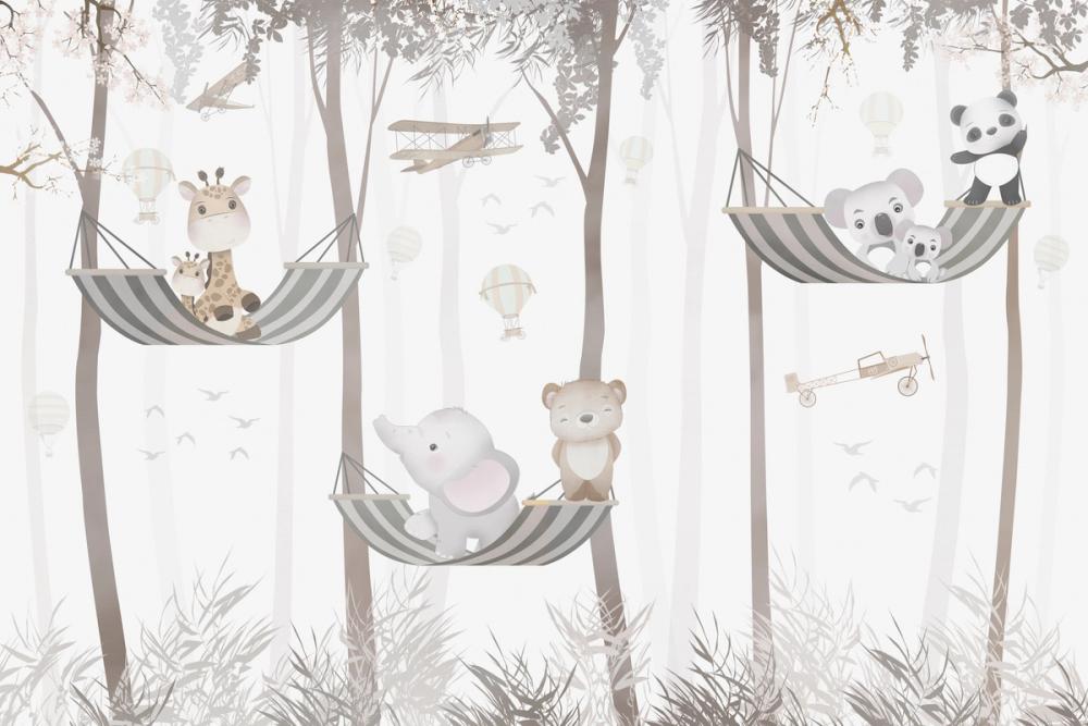Apresentamos o Hammock Swing - a forma perfeita de dar um toque criativo e único ao quarto dos seus filhos. Este mural feito à medida foi concebido num estilo figurativo e apresenta animais em tons de cor neutros com uma tonalidade branca. O processo de instalação é simples, por isso pode rápida e facilmente ter o quarto dos seus filhos com um ótimo aspeto. Com o seu design único, o Hammock Swing será certamente um início de conversa e fará com que o quarto dos seus filhos tenha um aspeto fantástico.