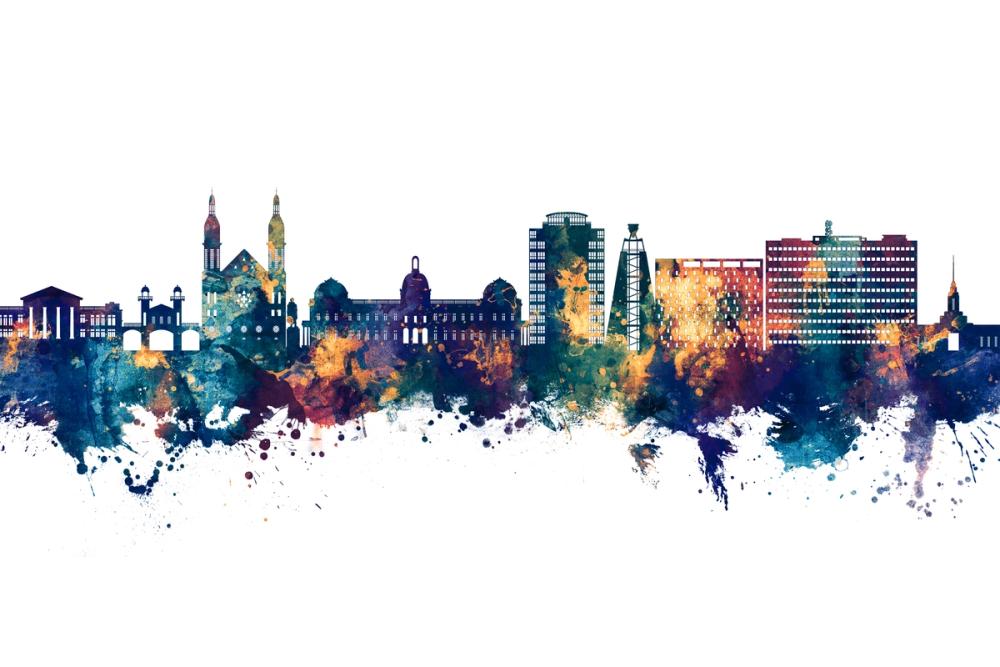 A bold and artistic city skyline comes to life in this wall mural, featuring the silhouette of Port-au-Prince with its mix of towers, domes, and modern structures. Painted in deep navy and black on a clean white background, the scene is energised by splashes of blue, orange, and purple that blend like watercolour. This inspired and whimsical design adds a dramatic focal point to living rooms, hallways, home offices, and even creative workspaces. Ideal for those who love abstract urban themes and vivid colour contrasts, this mural brings a sense of movement and culture to any space.
